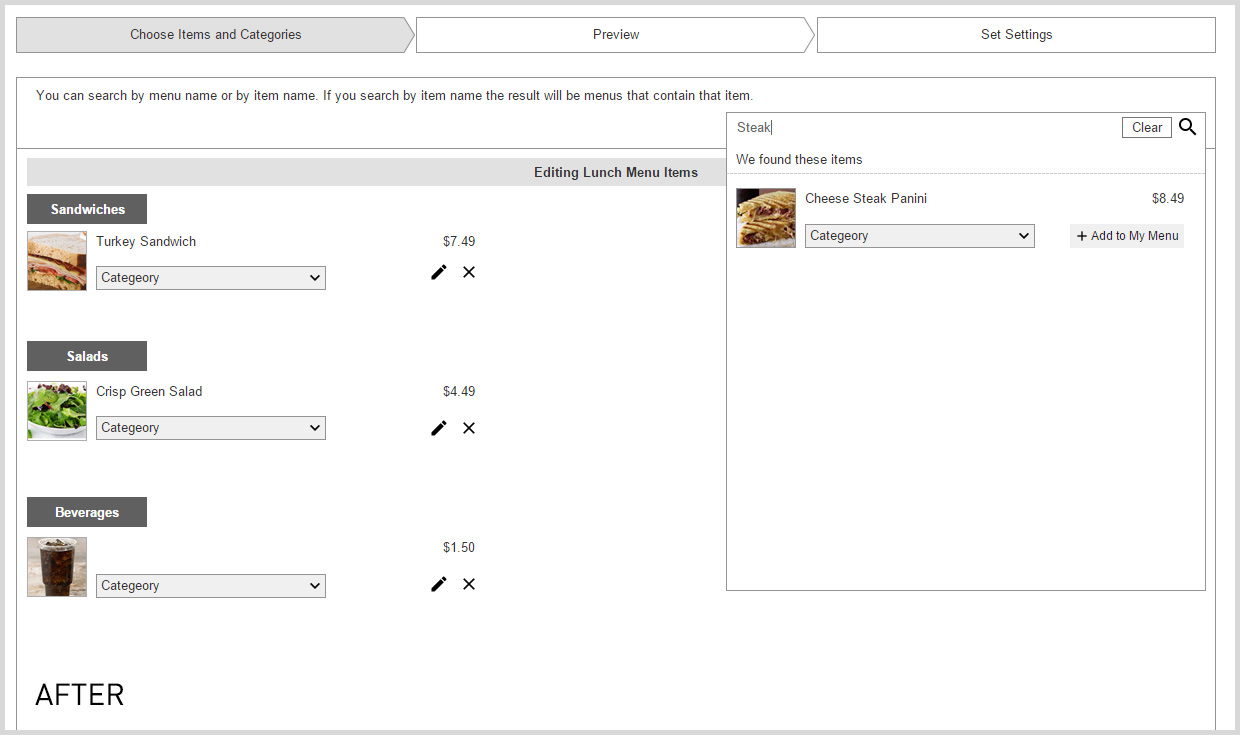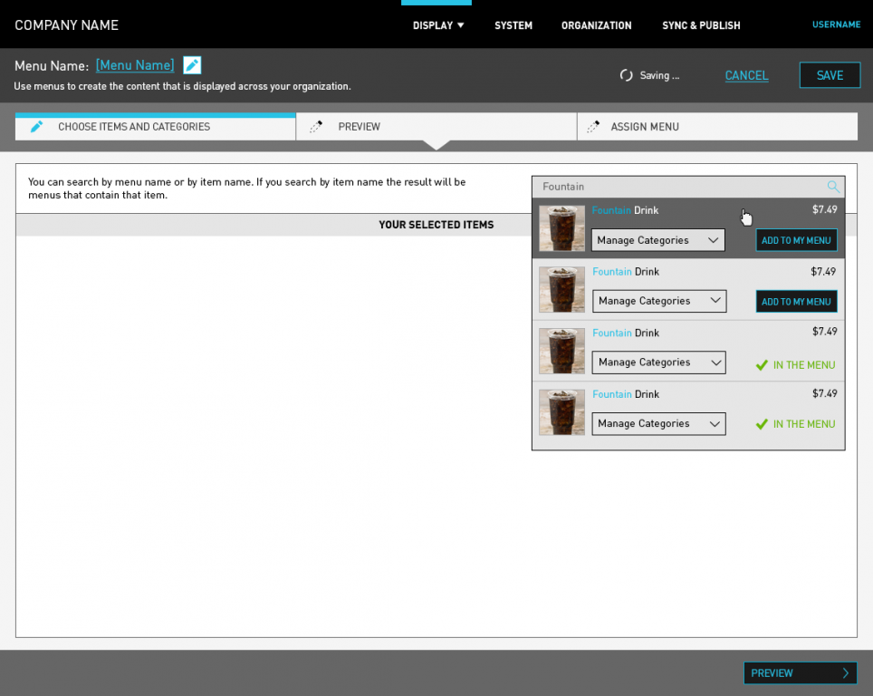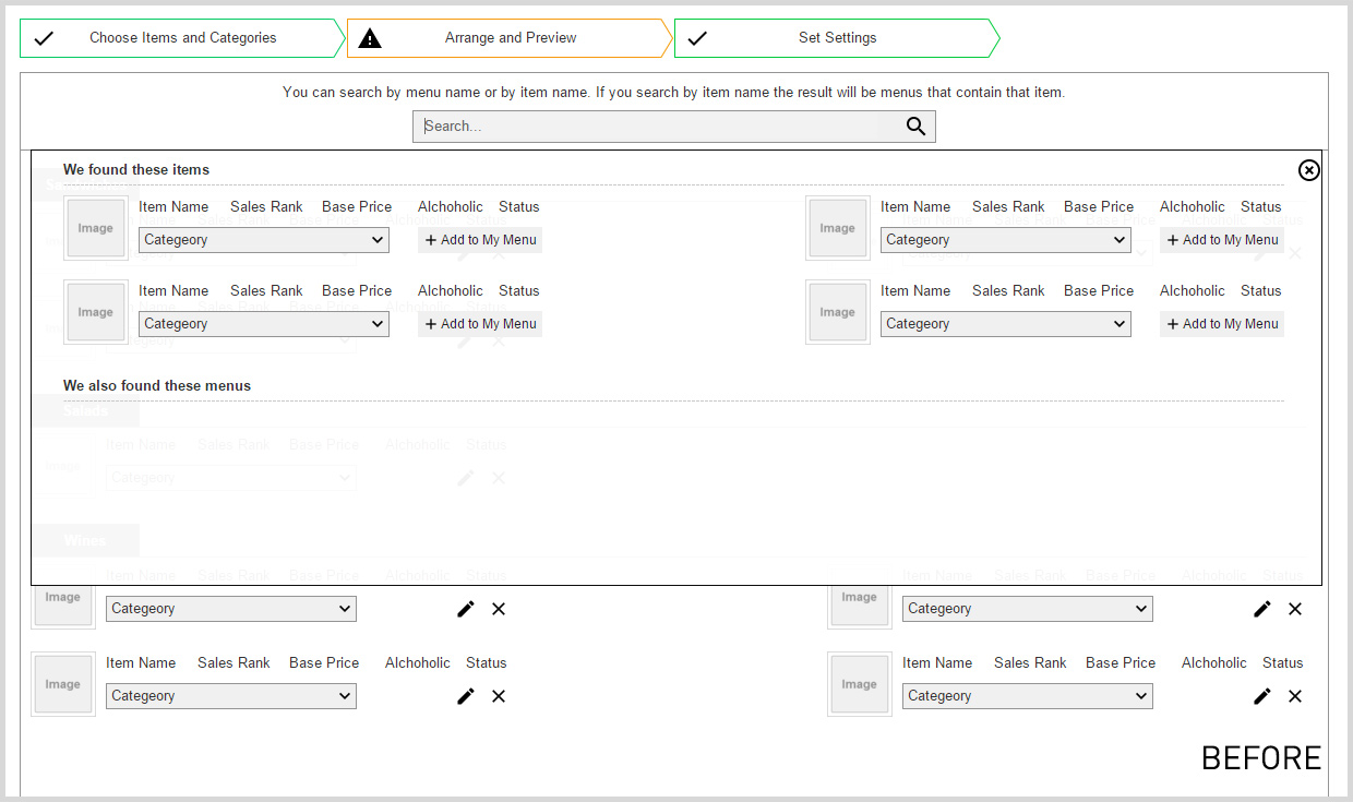 Creating and managing menus in POS systems are hard and very time consuming. Users who are using and managing these devices are not very tech savvy and want to create a good looking pages for their services fast and easy. We needed to find a better and easier solution to help users manage their POS dashboards.