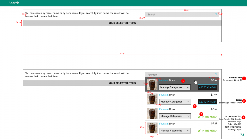 When users tried to add new items to a menu, the search result was covering the previously added items and they didn’t see the changes while they were adding the items because newly added items covered by search drop down results.